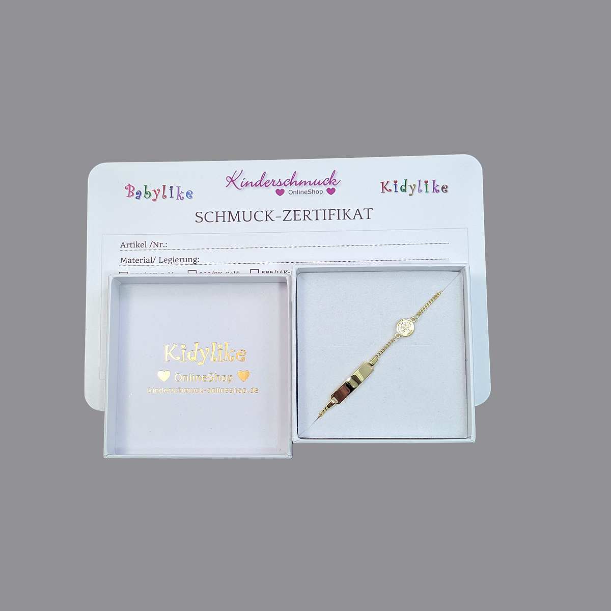 Hochwertiges Taufarmband aus Gold inkl. Namensgravur, auf Wunsch zusätzlich rückseitige Gravur